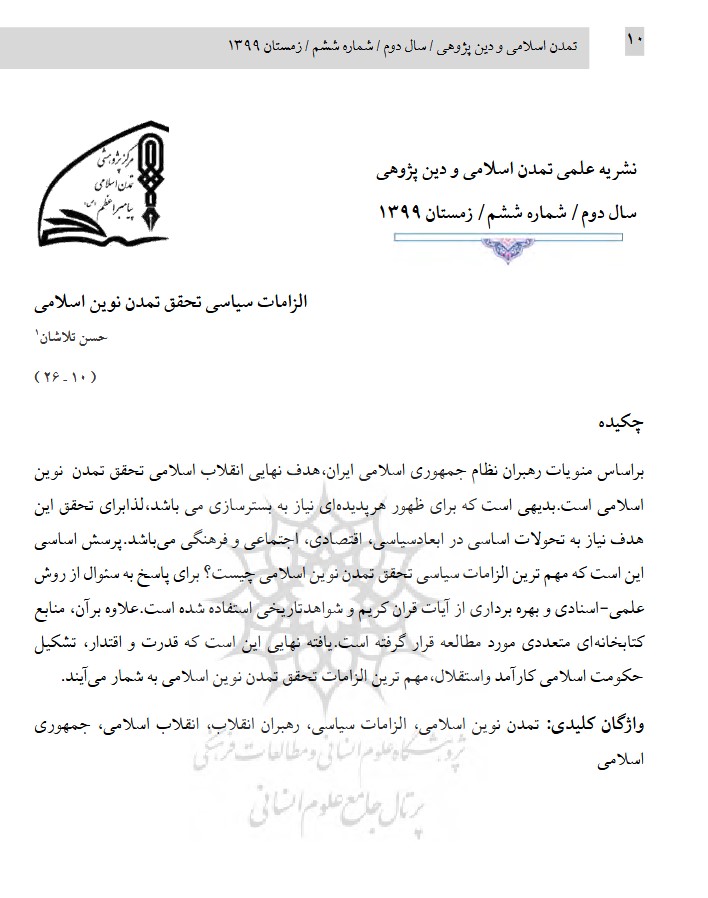 مقاله: الزامات سیاسی تحقق تمدن نوین اسلامی