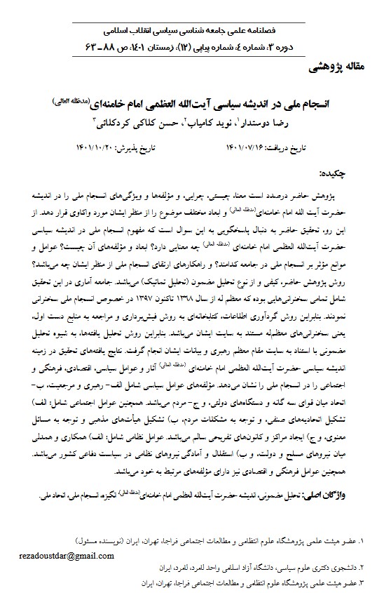 مقاله: انسجام ملی در اندیشه سیاسی آیت الله العظمی خامنه ای (مدظله العالی)