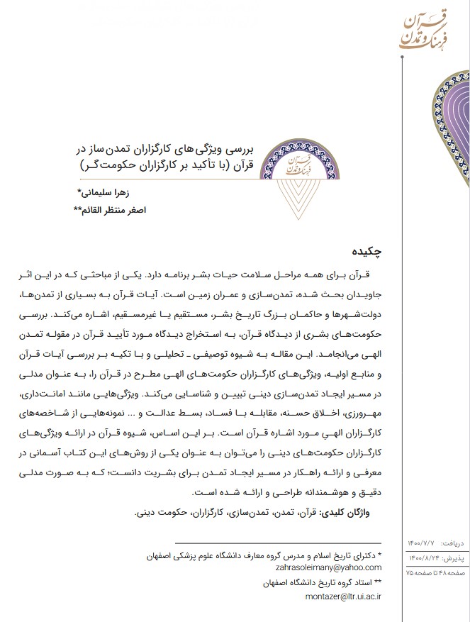 مقاله: بررسی ویژگیهای کارگزاران تمدنساز در قرآن( با تاکید بر کارگزاران حکومتگر)