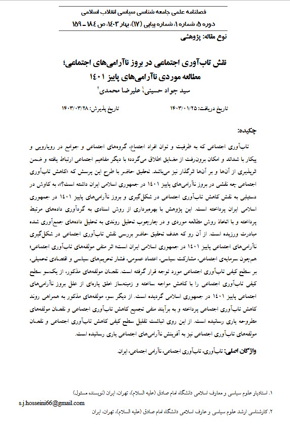 مقاله: نقش تاب آوری اجتماعی در بروز ناآرامی های اجتماعی؛ مطالعه موردی ناآرامی های پاییز 1401