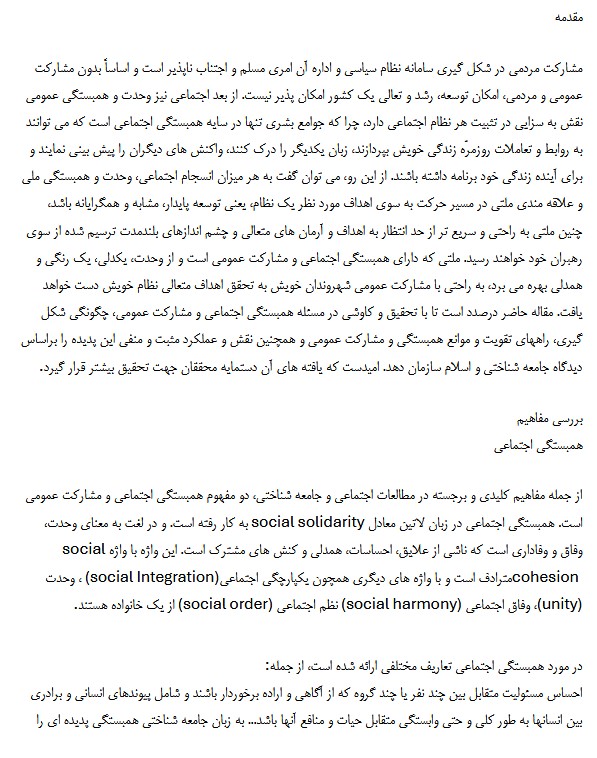 مقاله: همبستگی اجتماعی و مشارکت عمومی
